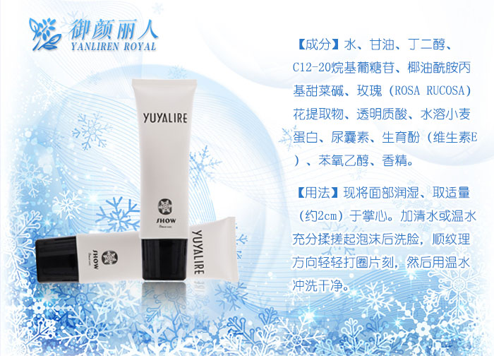 “御顏麗人”意在致力開發、設計出真正適合亞洲人,特別是中國人膚質的護膚產品。“高尚生活格調源于簡約自然的保養”,秉承這樣的護膚理念,經過多年的市場檢驗,證明了“御顏麗人”定位的成功,并受到了消費者的一致認可。
